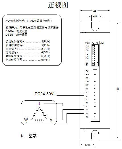 OFF, 單脈沖:PU為步進脈沖信號,DR為方向控制信號