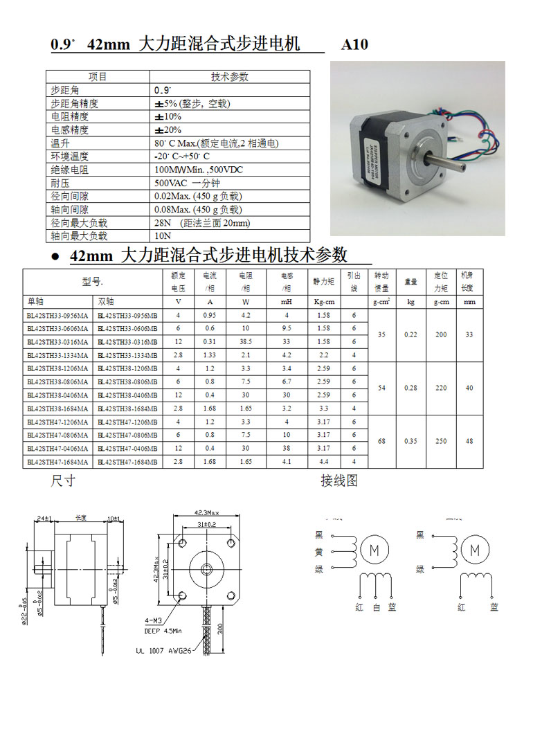 0.9°42mm兩相大力距混合式步進電機