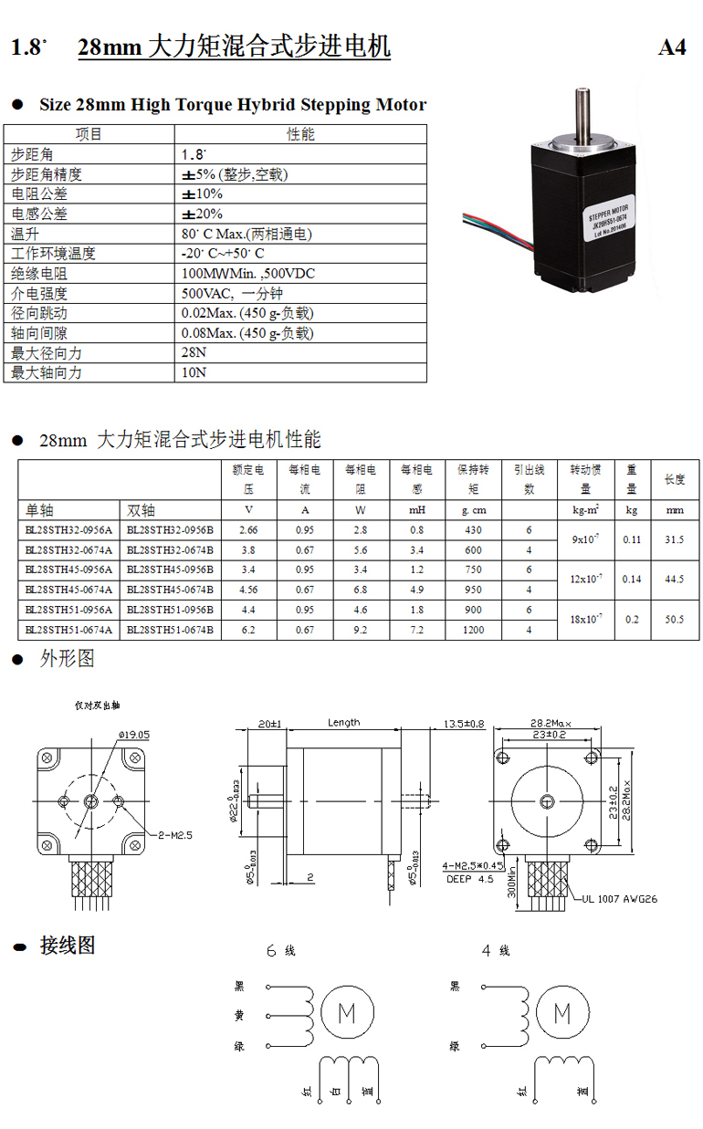 | 1.8°28mm兩相大力矩混合式步進電機 |